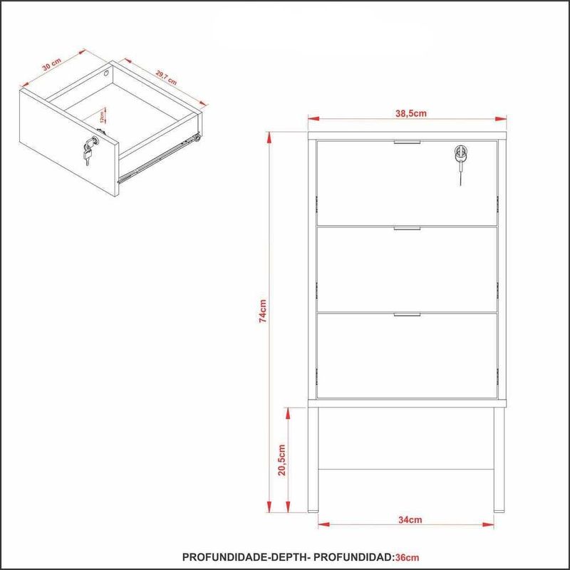 Gaveteiro para Escritório com Chave Multimóveis CR25055 Amendoa/Preto REF: 574722_Sicredi
