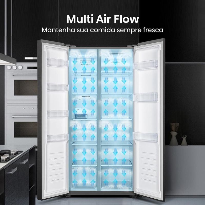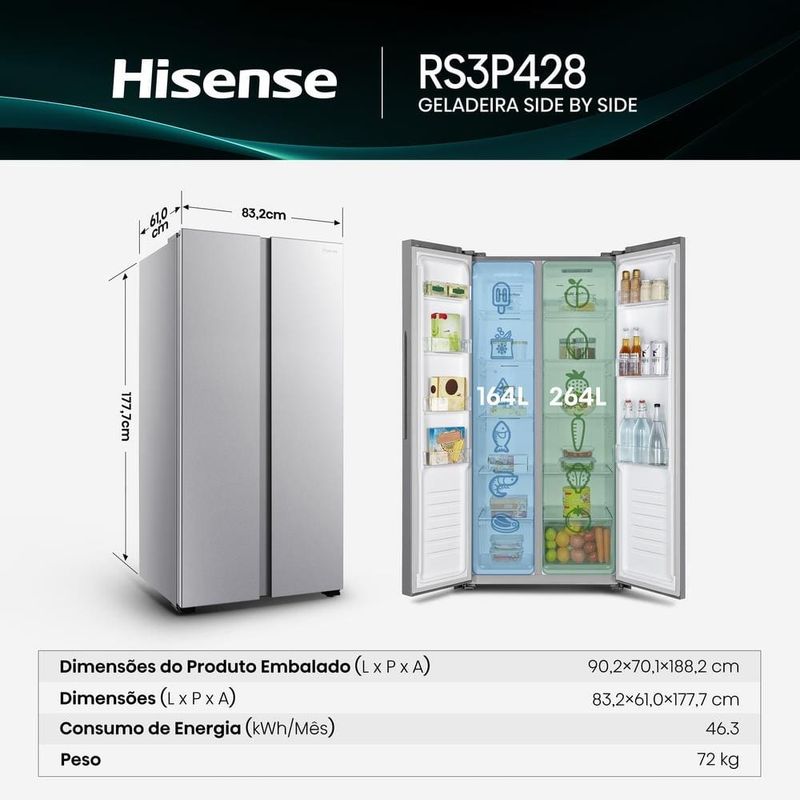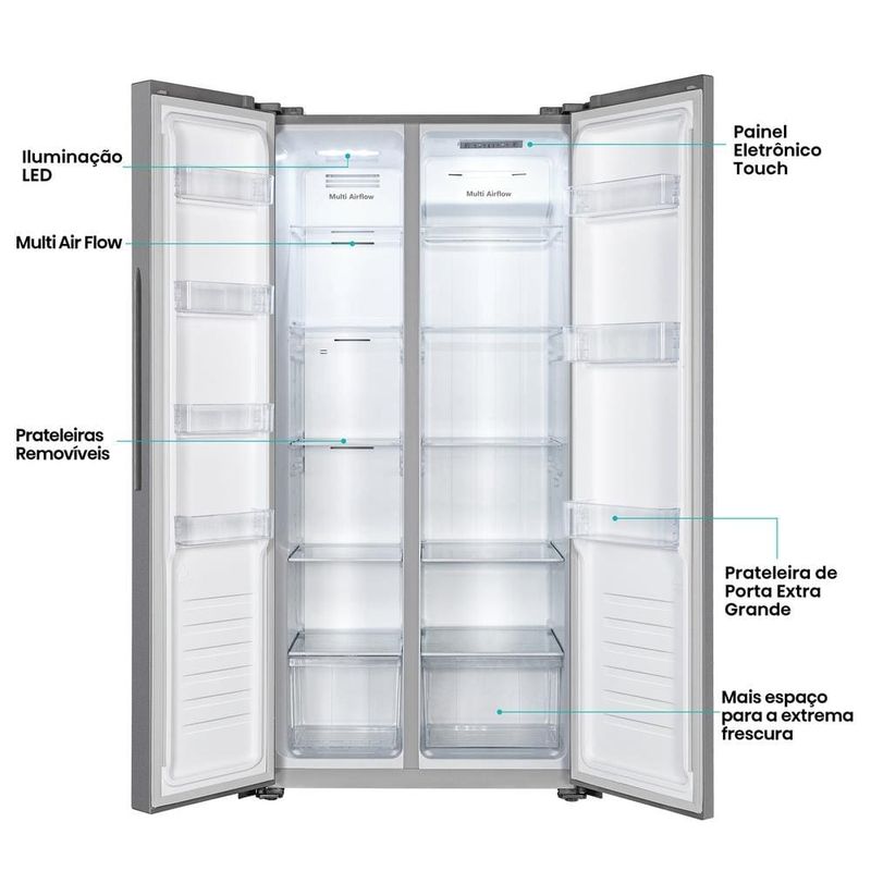 Geladeira 428L Hisense RS3P428 Side by Side Inverter Frost Free Portas Planas Puxador Embutido Cinza REF: 6921727092373
