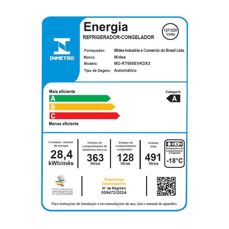 Geladeira Midea Frost Free Duplex MD-RT650EVKDX33, 491 Litros Preta com Tecnologia Inverter e Painel touch Flexi-volt REF: 7898761370172