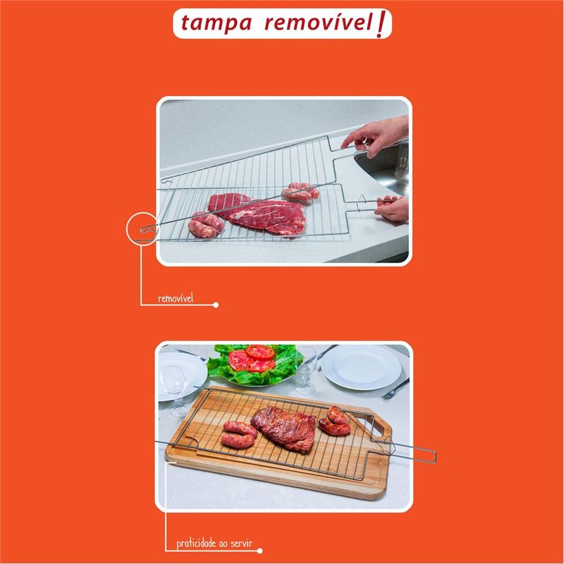 Grelha Dupla para Carne Utimil Pequena em Aço Cromado REF: 87594_Sicredi