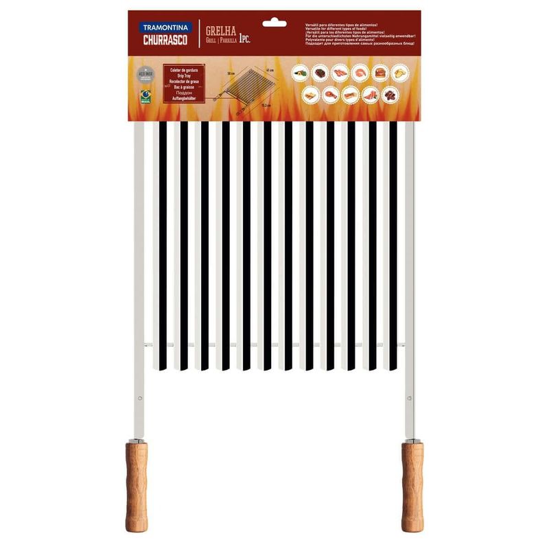 Grelha Tramontina Churrasco 50x41cm Aço Inox com Cabo de Madeira REF: 7891112311886