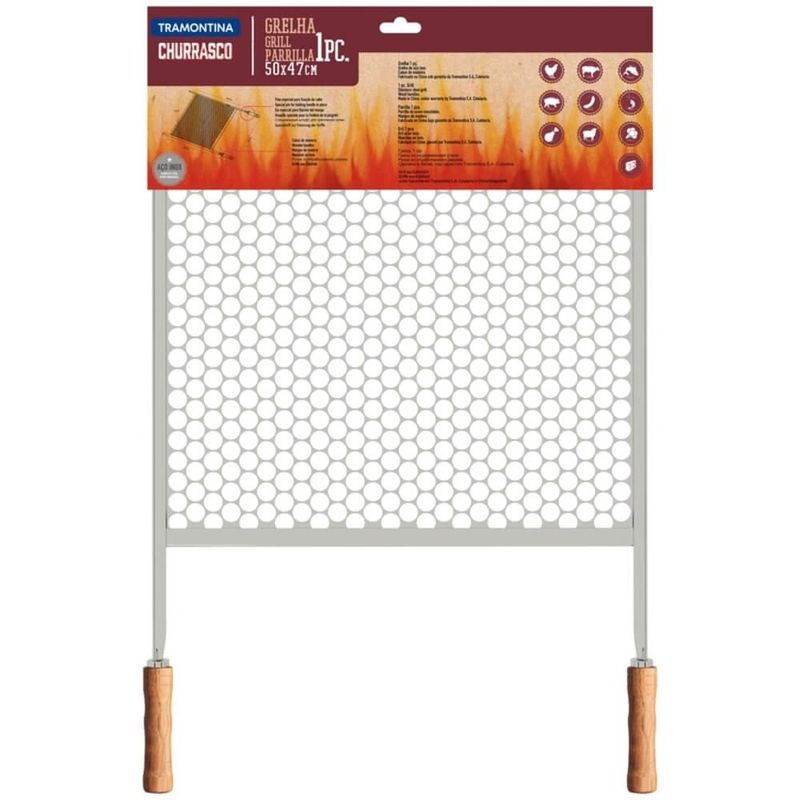 Grelha Tramontina Churrasco 83,5x47,1cm em Aço Inox e Cabo de Madeira REF: 7891112175891