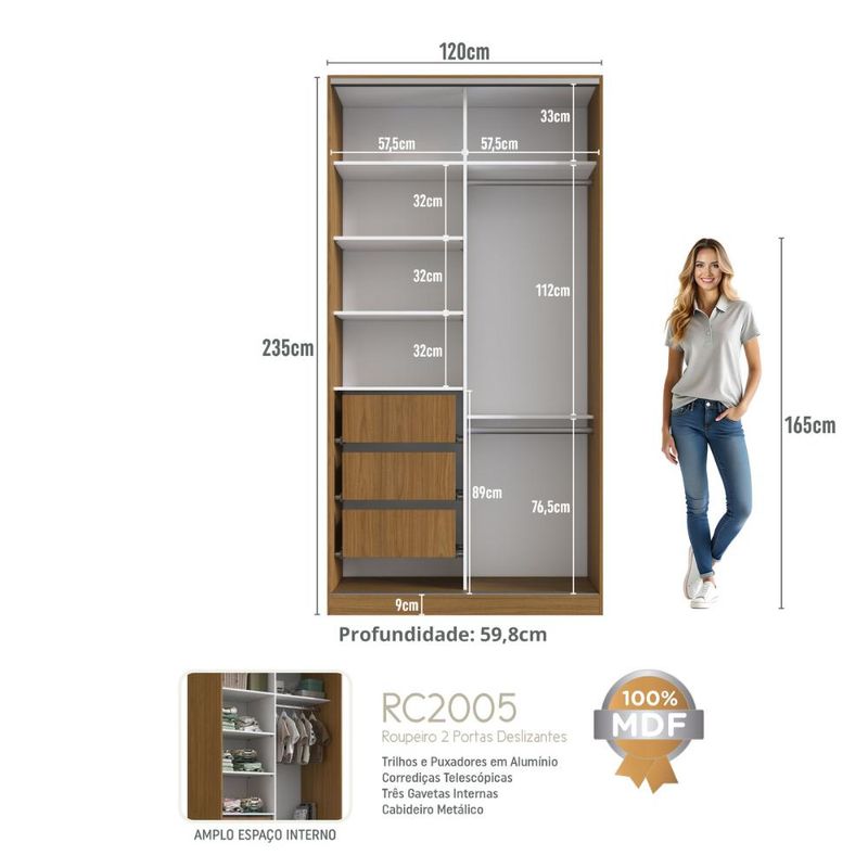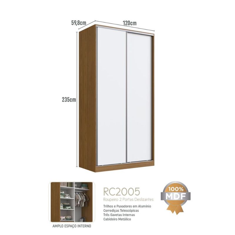 Casa e DecoraçãoMóveisGuarda-roupa e roupeirosGuarda Roupa 2 Portas de Correr Freijó Natural Branco 120x59
