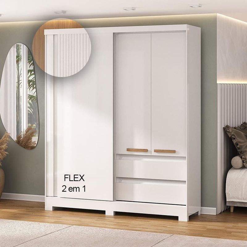Casa e DecoraçãoMóveisGuarda-roupa e roupeirosGuarda-Roupa Casal 1 Porta Correr Atualle Condor 3D Flex Branco Brilho