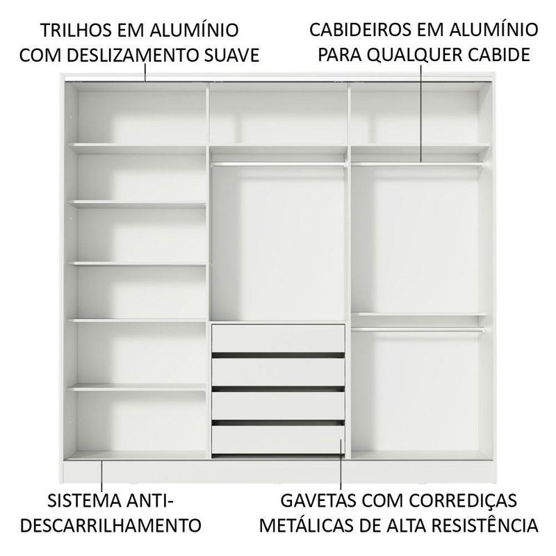 Guarda-Roupa Casal 100% MDF Madesa Eros 3 Portas de Correr com Espelhos - Branco REF: 511199_Sicredi