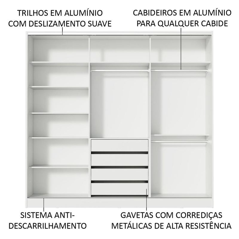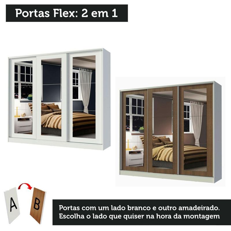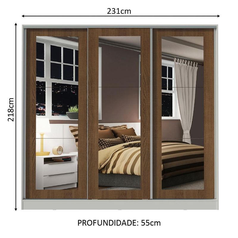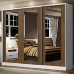 Guarda-Roupa Casal 100% MDF Madesa Eros 3 Portas de Correr de Espelho - Branco/Rustic REF: 511212_Sicredi