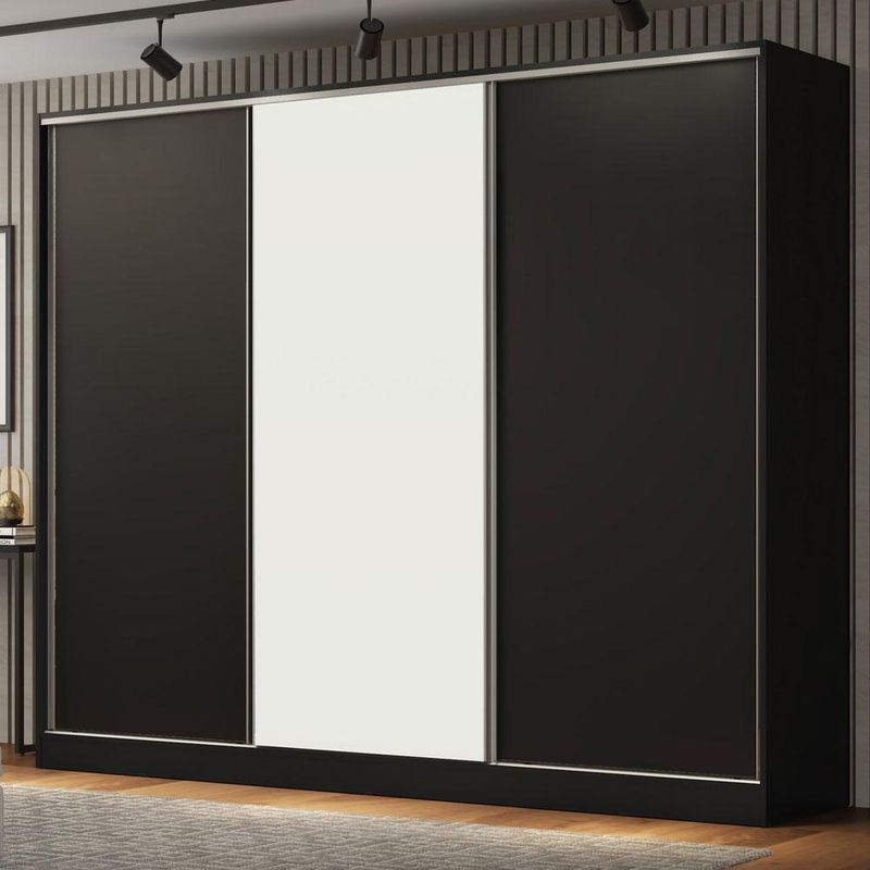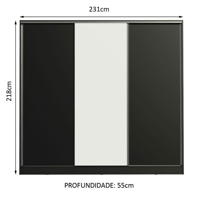 Guarda Roupa Casal 100% MDF Madesa Royale 3 Portas de Correr - Preto/Preto/Branco REF: 511069_Sicredi