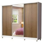 Guarda Roupa Casal 100% MDF Madesa Royale 3 Portas de Correr com Espelho com Pés - Branco/Rustic REF: 511077_Sicredi