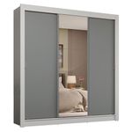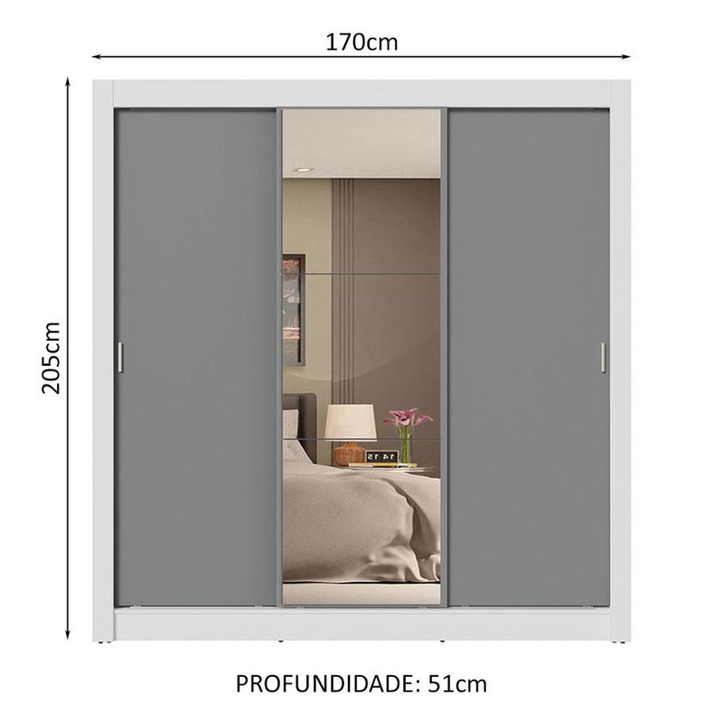 Guarda-Roupa Casal 3 Portas de Correr com Espelho 4 Gavetas Branco/Cinza Sublime Plus Madesa REF: 579126_Sicredi