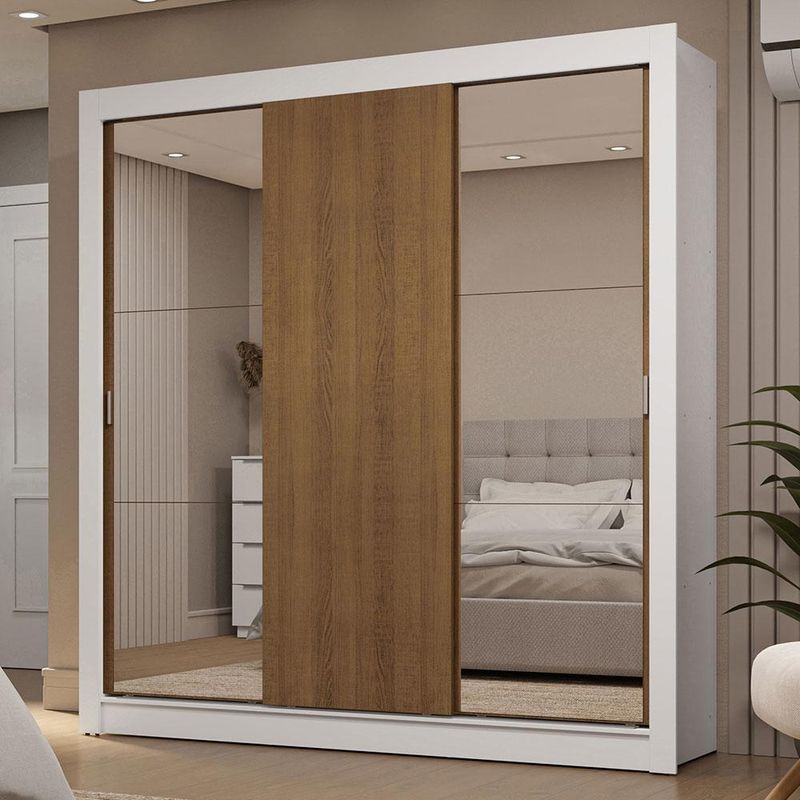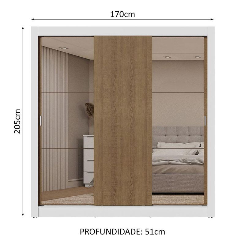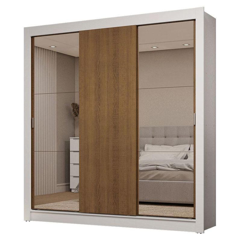 Guarda-Roupa Casal 3 Portas de Correr com Espelhos 2 Gavetas Branco/Rustic Sublime Madesa REF: 575979_Sicredi