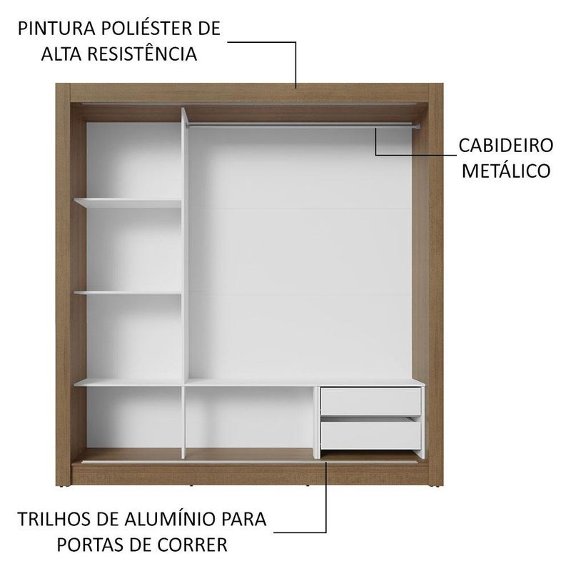 Guarda-Roupa Casal 3 Portas de Correr com Espelhos 2 Gavetas Rustic/Cinza Sublime Madesa REF: 576006_Sicredi
