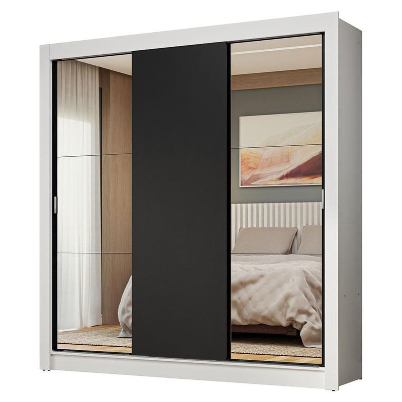 Casa e DecoraçãoMóveisGuarda-roupa e roupeirosGuarda-Roupa Casal 3 Portas de Correr com Espelhos Branco/Preto Nobre Madesa