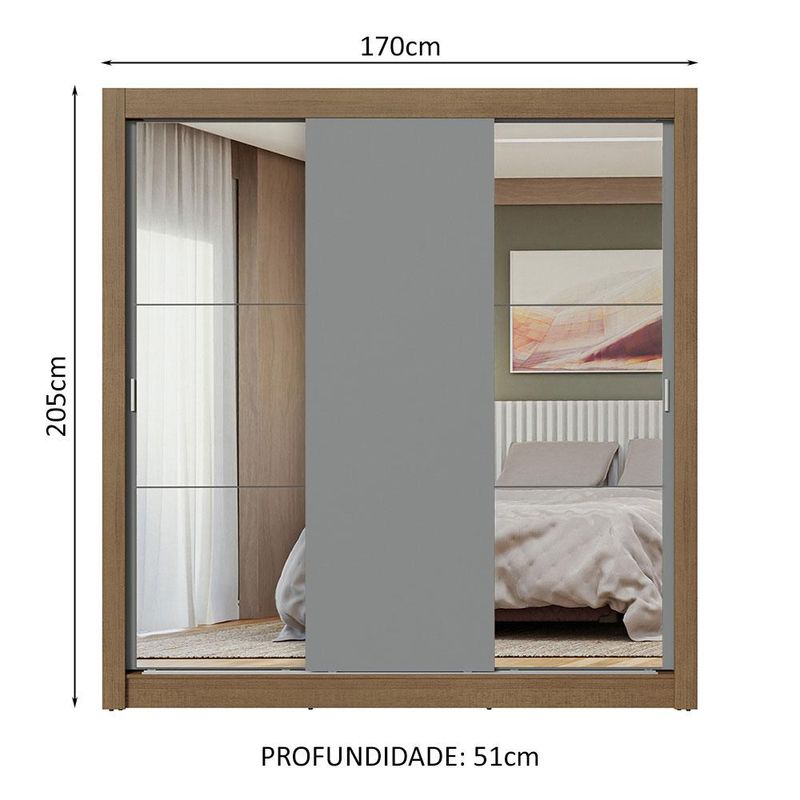 Guarda-Roupa Casal 3 Portas de Correr com Espelhos Rustic/Cinza Nobre Madesa REF: 571071_Sicredi