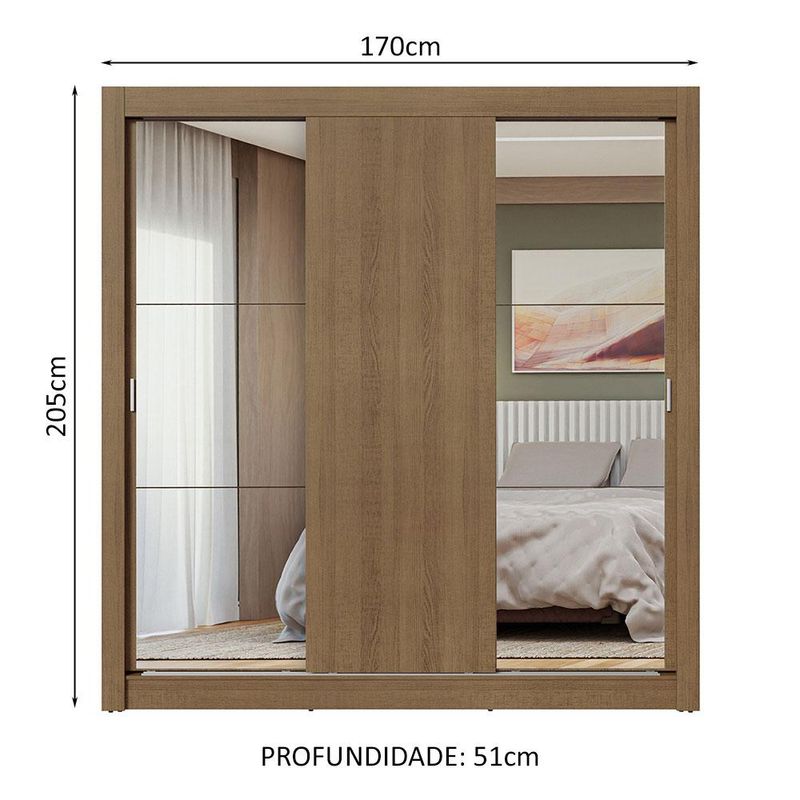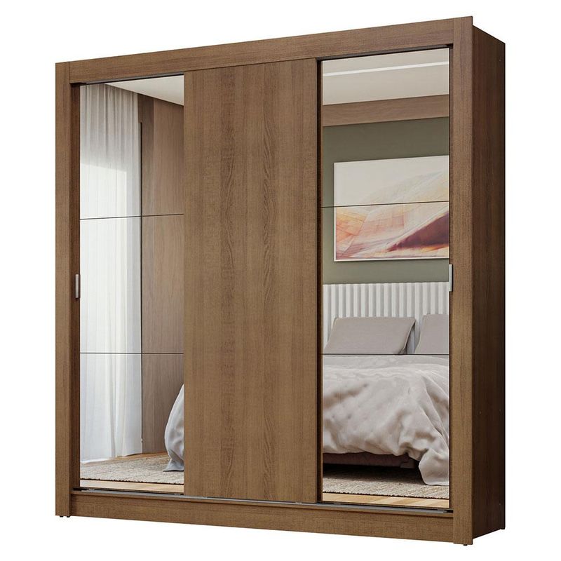 Guarda-Roupa Casal 3 Portas de Correr com Espelhos Rustic Nobre Madesa REF: 571070_Sicredi