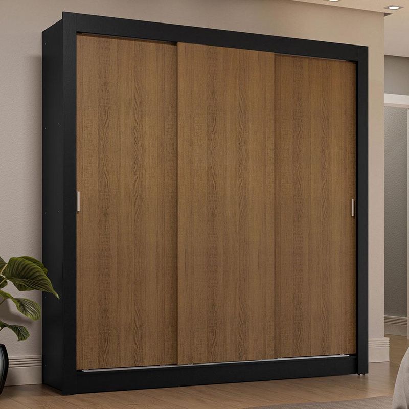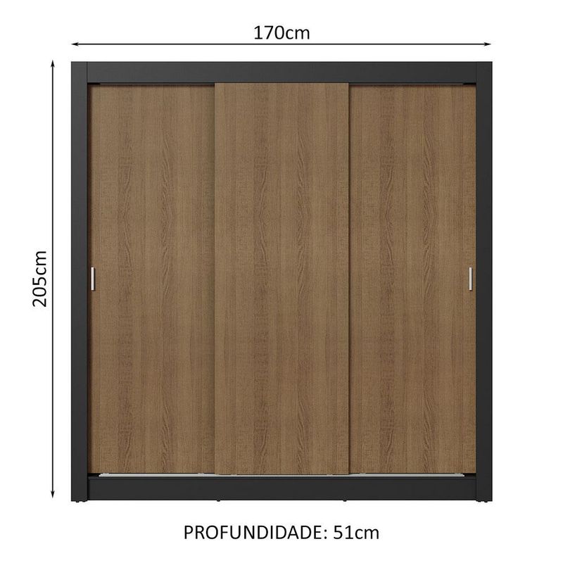 Guarda-Roupa Casal 3 Portas de Correr Preto/Rustic Sublime Plus Madesa REF: 579030_Sicredi
