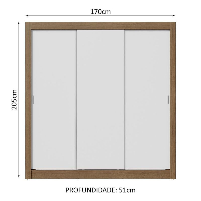 Guarda-Roupa Casal 3 Portas de Correr Rustic/Branco Sublime Madesa REF: 573761_Sicredi