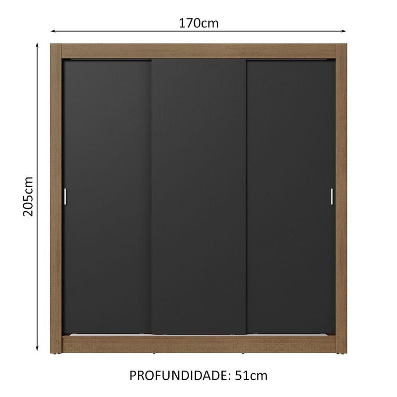 Guarda-Roupa Casal 3 Portas de Correr Rustic/Preto Sublime Plus Madesa REF: 579034_Sicredi