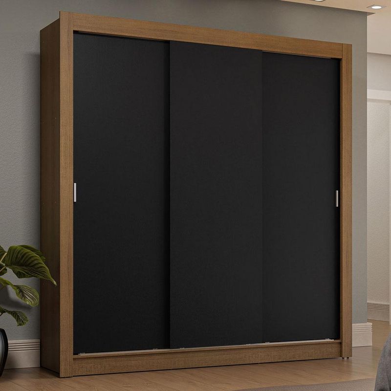 Casa e DecoraçãoMóveisGuarda-roupa e roupeirosGuarda-Roupa Casal 3 Portas de Correr Rustic/Preto Sublime Plus Madesa