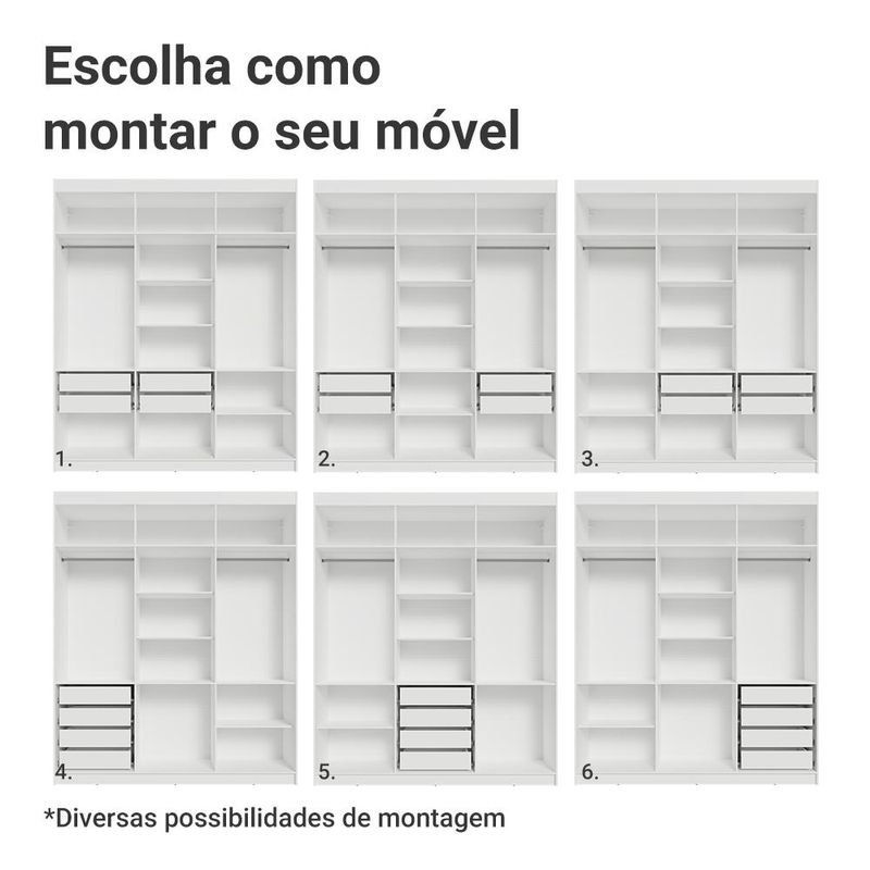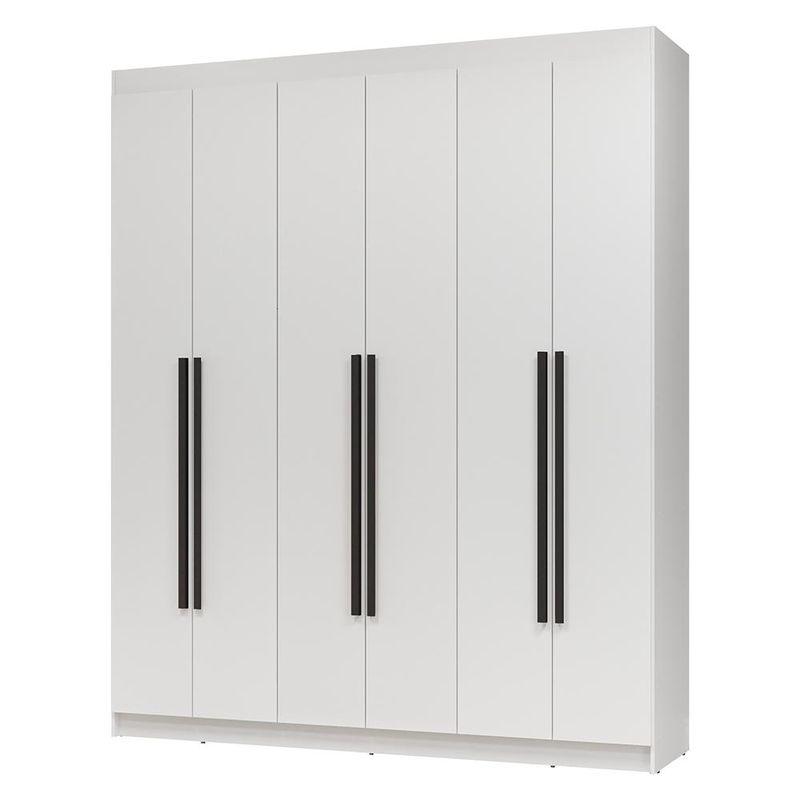Casa e DecoraçãoMóveisGuarda-roupa e roupeirosGuarda-Roupa Casal 6 Portas Batentes Branco/Branco/Preto Netuno Madesa
