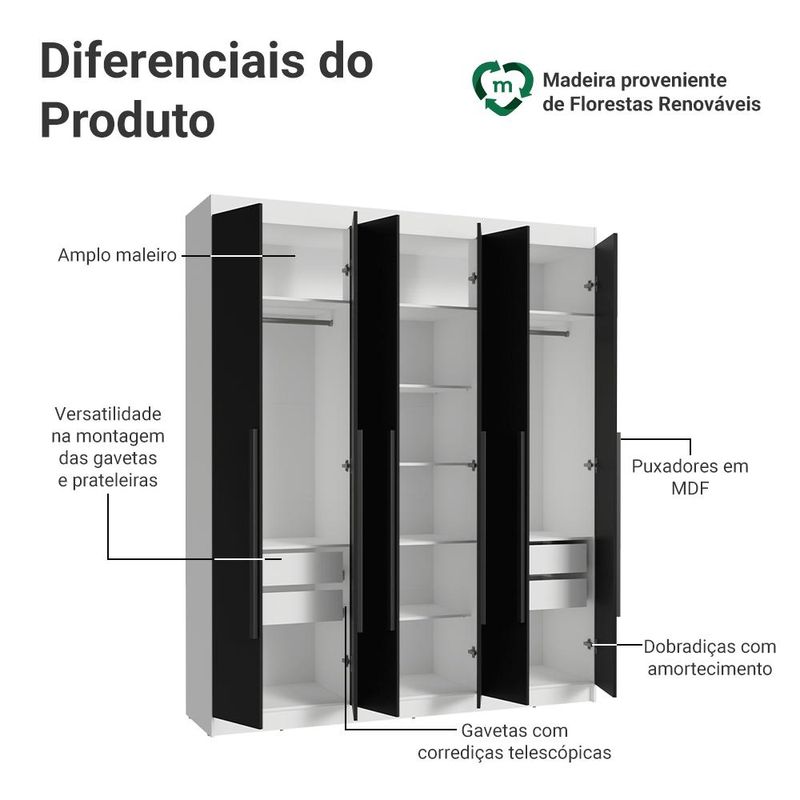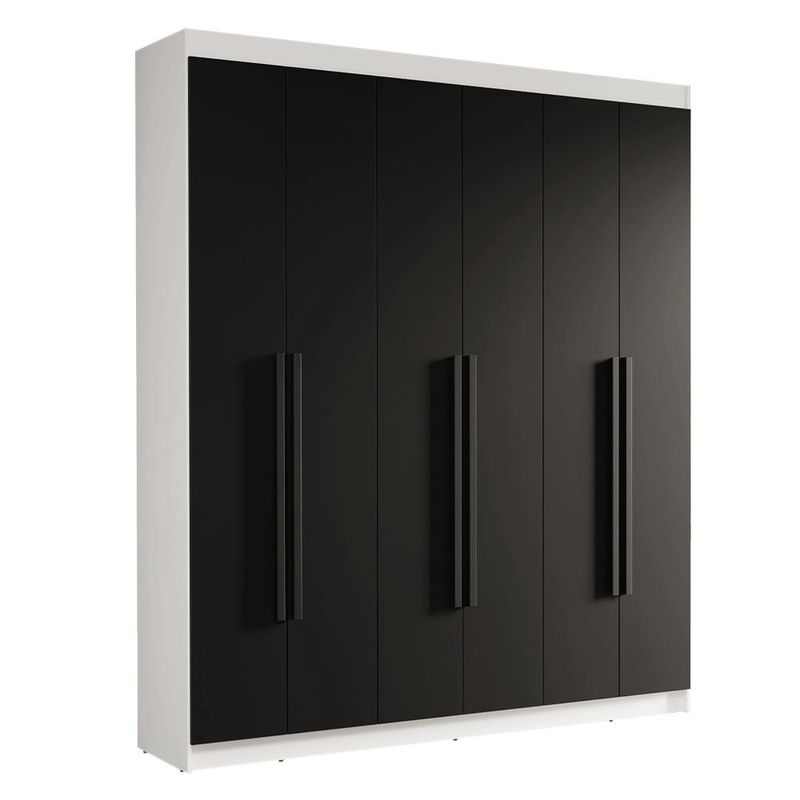 Guarda-Roupa Casal 6 Portas Batentes Branco/Preto/Preto Saturno Madesa REF: 766930_Sicredi