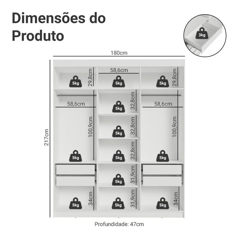 Casa e DecoraçãoMóveisGuarda-roupa e roupeirosGuarda-Roupa Casal 6 Portas Batentes com Espelho Branco/Preto/Preto Venus Madesa