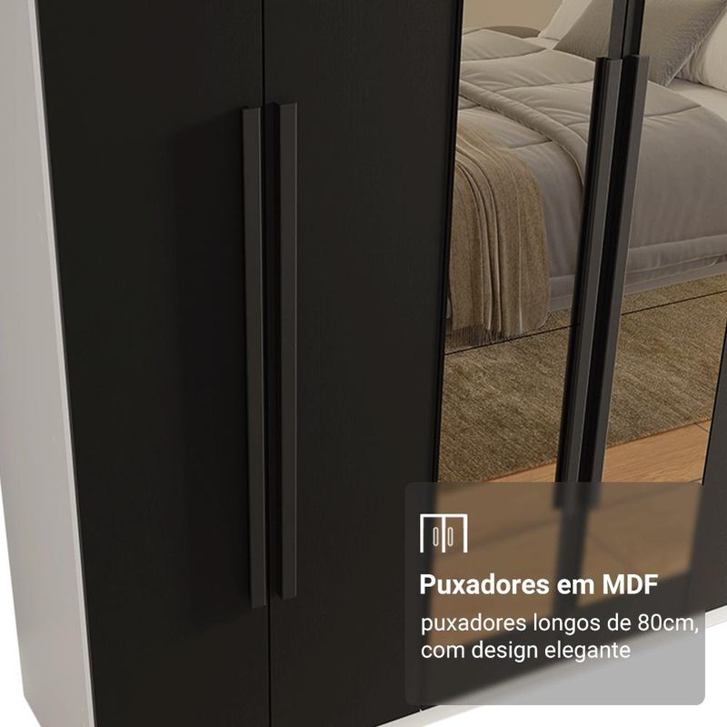 Guarda-Roupa Casal 6 Portas Batentes com Espelho Branco/Preto/Preto Venus Madesa REF: 766696_Sicredi