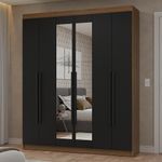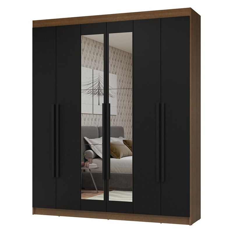 Casa e DecoraçãoMóveisGuarda-roupa e roupeirosGuarda-Roupa Casal 6 Portas Batentes com Espelho Rustic/Preto/Preto Netuno Madesa