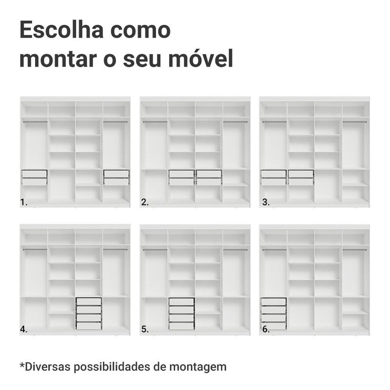 Casa e DecoraçãoMóveisGuarda-roupa e roupeirosGuarda-Roupa Casal 8 Portas Batentes Branco/Preto/Preto Venus Madesa