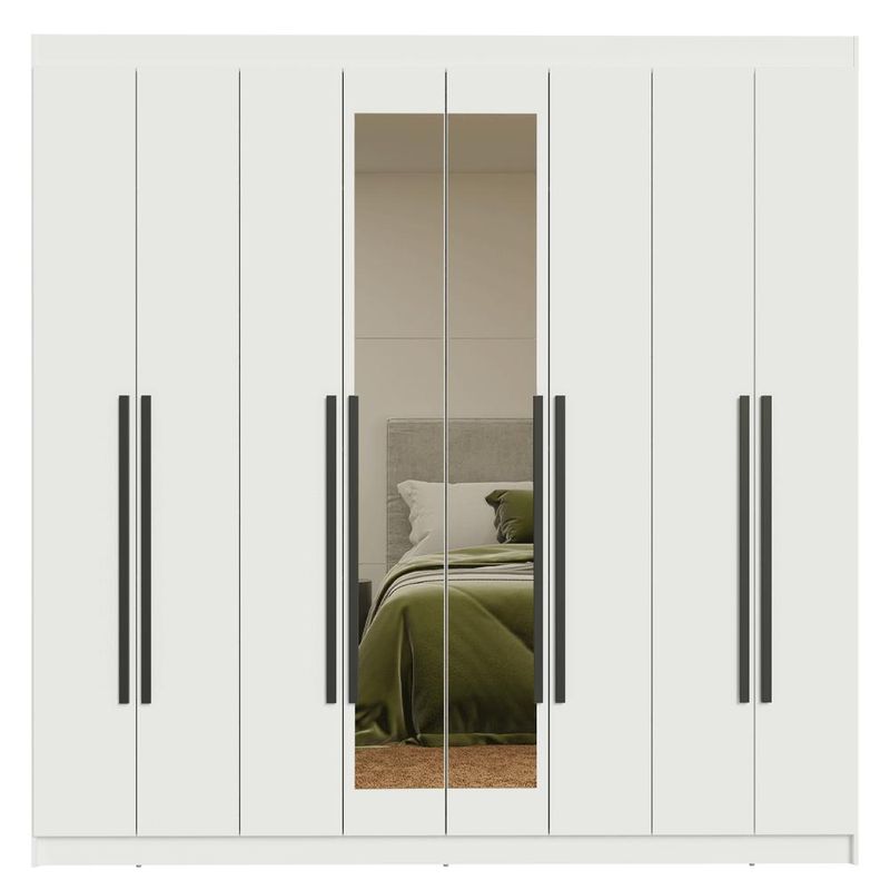 Guarda-Roupa Casal 8 Portas Batentes com Espelho Branco/Branco/Preto Saturno Madesa REF: 766867_Sicredi