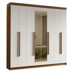 Guarda-Roupa Casal 8 Portas Batentes com Espelho Rustic/Branco/Rustic Saturno Madesa REF: 766740_Sicredi