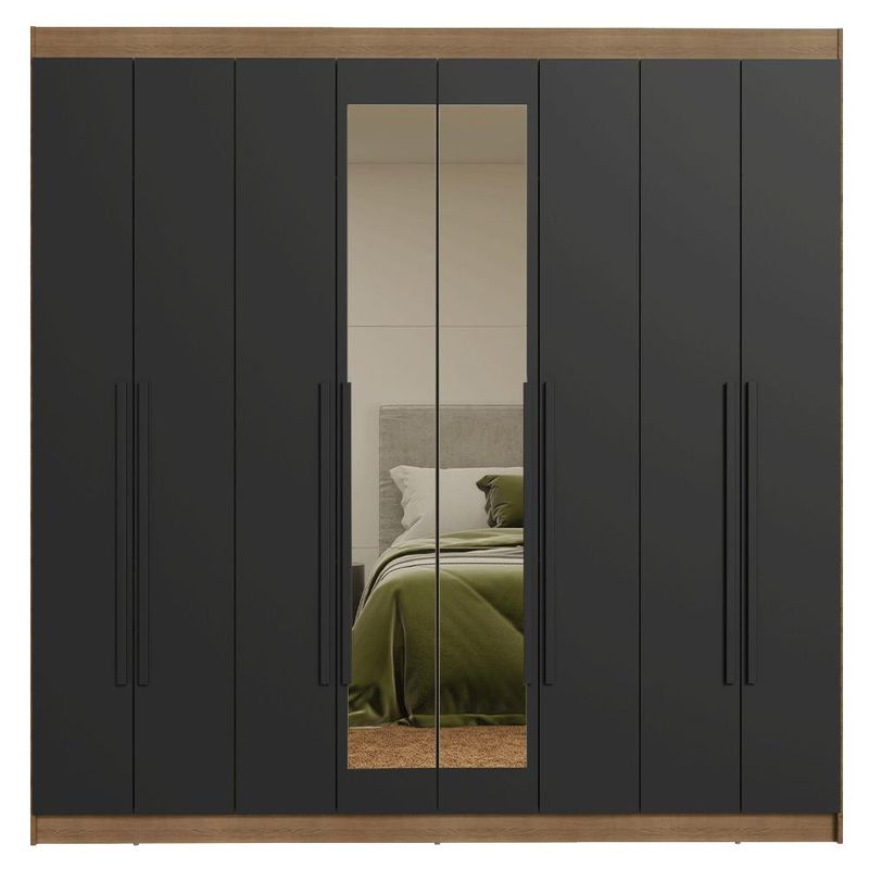 Casa e DecoraçãoMóveisGuarda-roupa e roupeirosGuarda-Roupa Casal 8 Portas Batentes com Espelho Rustic/Preto/Preto Venus Madesa