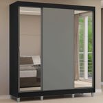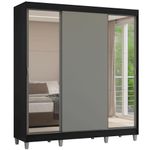 Guarda-Roupa Casal com Pés 3 Portas de Correr com Espelhos Preto/Cinza Reno Madesa REF: 7891760987006