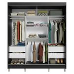 Casa e DecoraçãoMóveisGuarda-roupa e roupeirosGuarda-Roupa Casal com Pés 3 Portas de Correr com Espelhos Preto/Cinza Reno Madesa