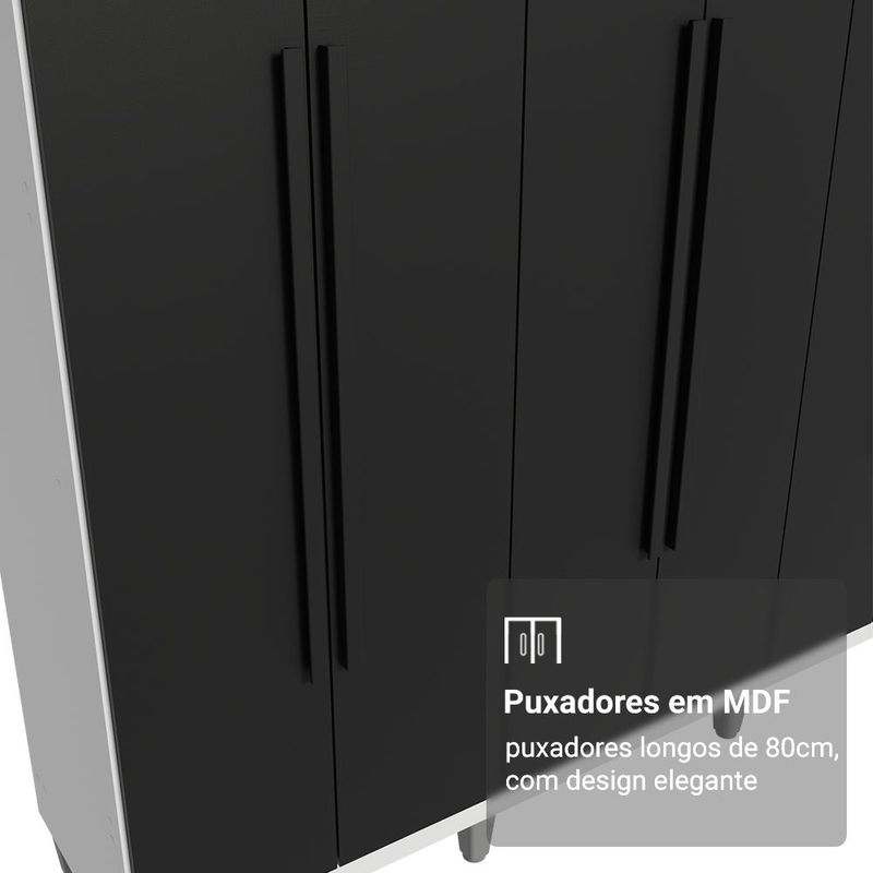Casa e DecoraçãoMóveisGuarda-roupa e roupeirosGuarda-Roupa Casal com Pés 6 Portas Batentes Branco/Preto/Preto Saturno Madesa