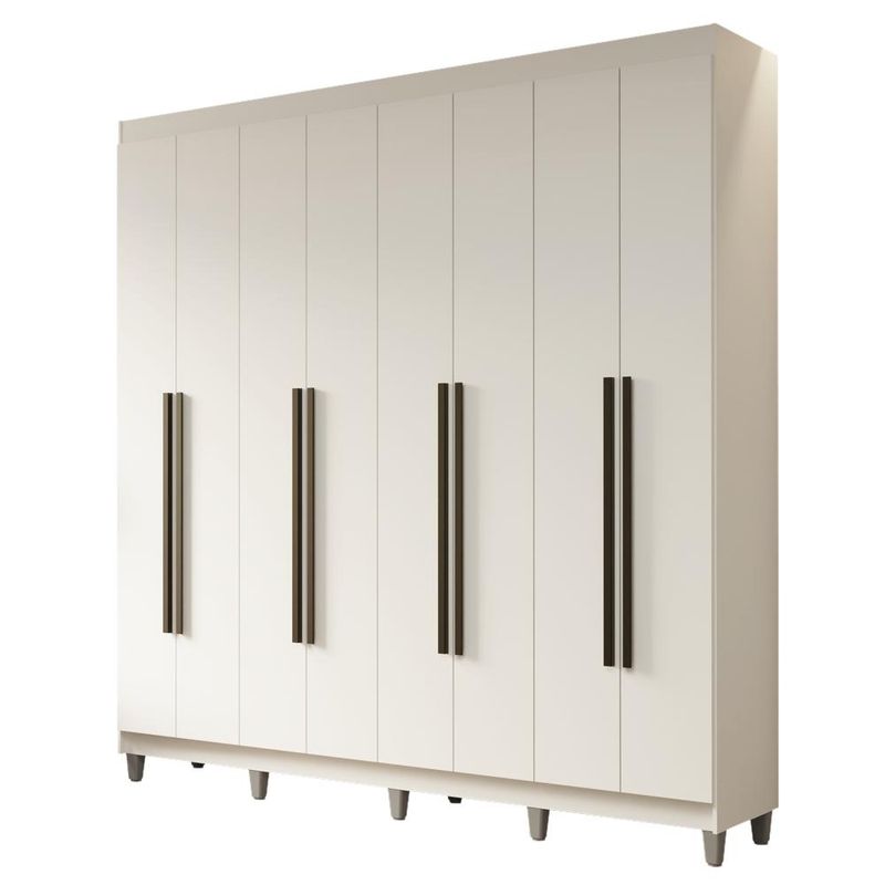Casa e DecoraçãoMóveisGuarda-roupa e roupeirosGuarda-Roupa Casal com Pés 8 Portas Batentes Branco/Branco/Preto Netuno Madesa
