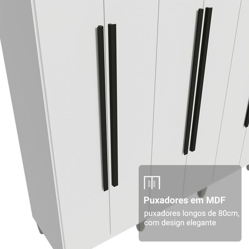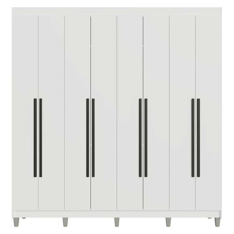 Guarda-Roupa Casal com Pés 8 Portas Batentes Branco/Branco/Preto Netuno Madesa REF: 7891760977601