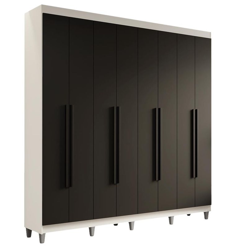 Casa e DecoraçãoMóveisGuarda-roupa e roupeirosGuarda-Roupa Casal com Pés 8 Portas Batentes Branco/Preto/Branco Saturno Madesa