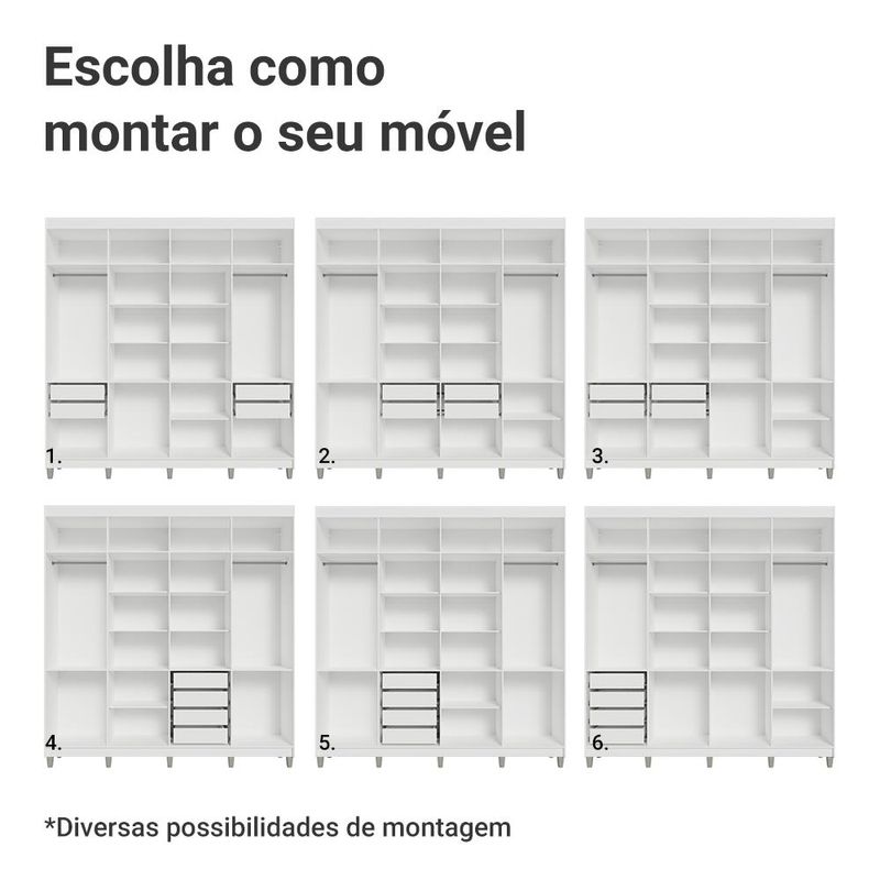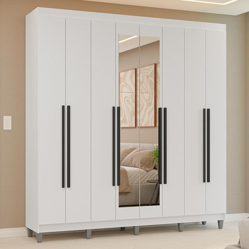 Casa e DecoraçãoMóveisGuarda-roupa e roupeirosGuarda-Roupa Casal com Pés 8 Portas Batentes com Espelho Branco/Branco/Preto Venus Madesa