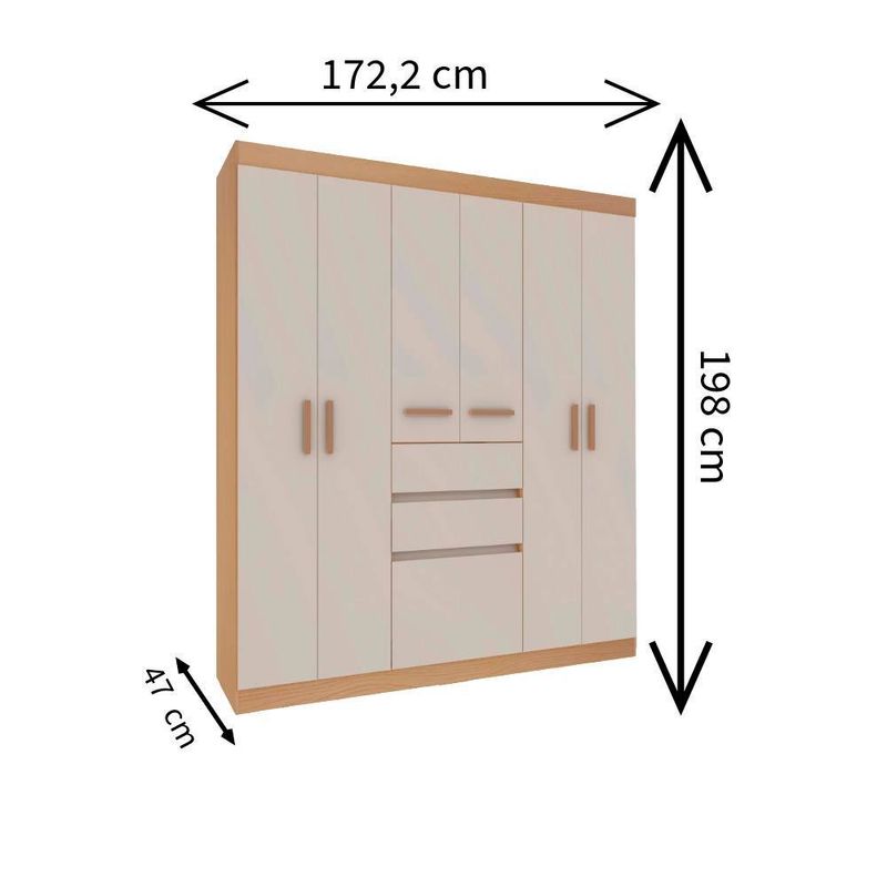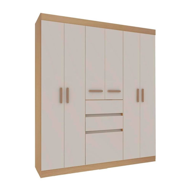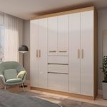 Casa e DecoraçãoMóveisGuarda-roupa e roupeirosGuarda-Roupa Casal Genialflex Berna com 6 Portas, 2 Gavetas, 4 Prateleiras e 172cm de largura - Freijó/White Laca