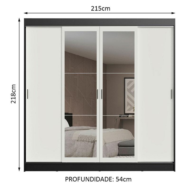 Guarda-Roupa Casal Madesa Austin 4 Portas de Correr com Espelhos 3 Gavetas - Preto/Branco REF: 511228_Sicredi