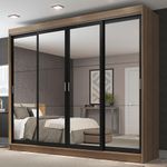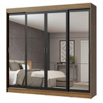Guarda-Roupa Casal Madesa Austin 4 Portas de Correr de Espelho 3 Gavetas - Rustic/Preto REF: 511240_Sicredi