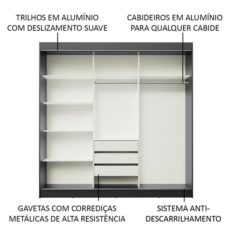 Casa e DecoraçãoMóveisGuarda-roupa e roupeirosGuarda-Roupa Casal Madesa Istambul 3 Portas de Correr com Espelho 3 Gavetas - Preto/Rustic