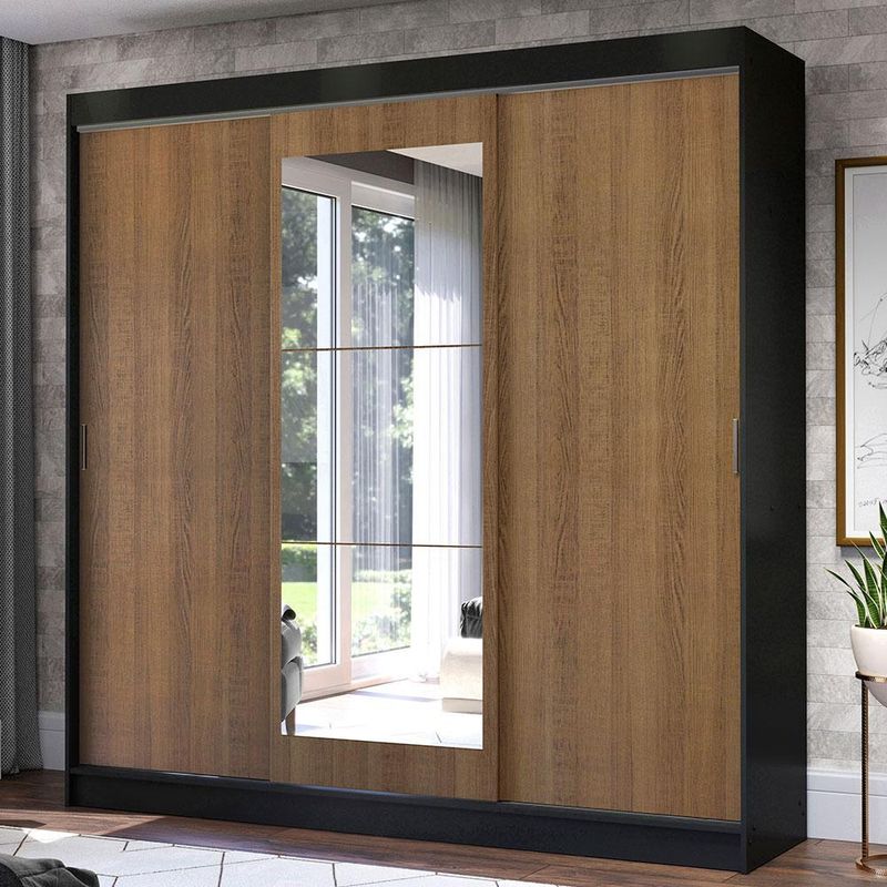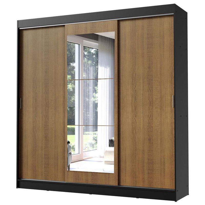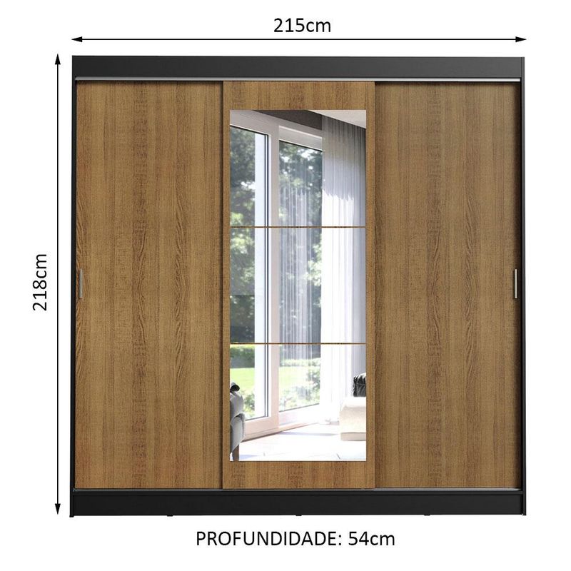 Guarda-Roupa Casal Madesa Istambul 3 Portas de Correr com Espelho 3 Gavetas - Preto/Rustic REF: 511247_Sicredi