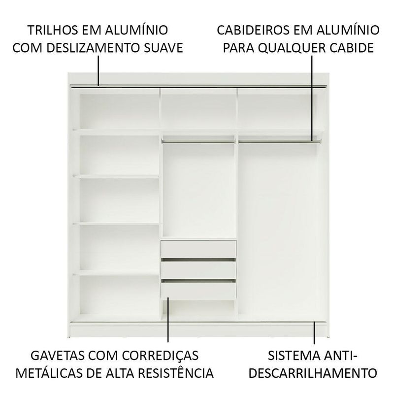 Casa e DecoraçãoMóveisGuarda-roupa e roupeirosGuarda-Roupa Casal Madesa Kansas 3 Portas de Correr 3 Gavetas