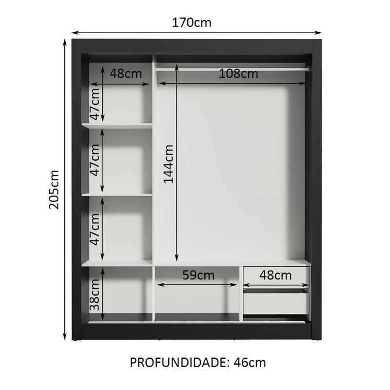 Guarda Roupa Casal Madesa Lyon 3 Portas de Correr com Espelho 2 Gavetas REF: 511106_Sicredi