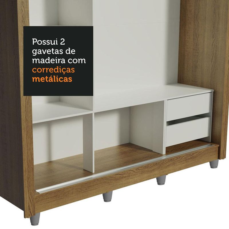 Guarda-Roupa Casal Madesa Lyon 3 Portas de Correr com Espelhos 2 Gavetas com Pés REF: 511319_Sicredi