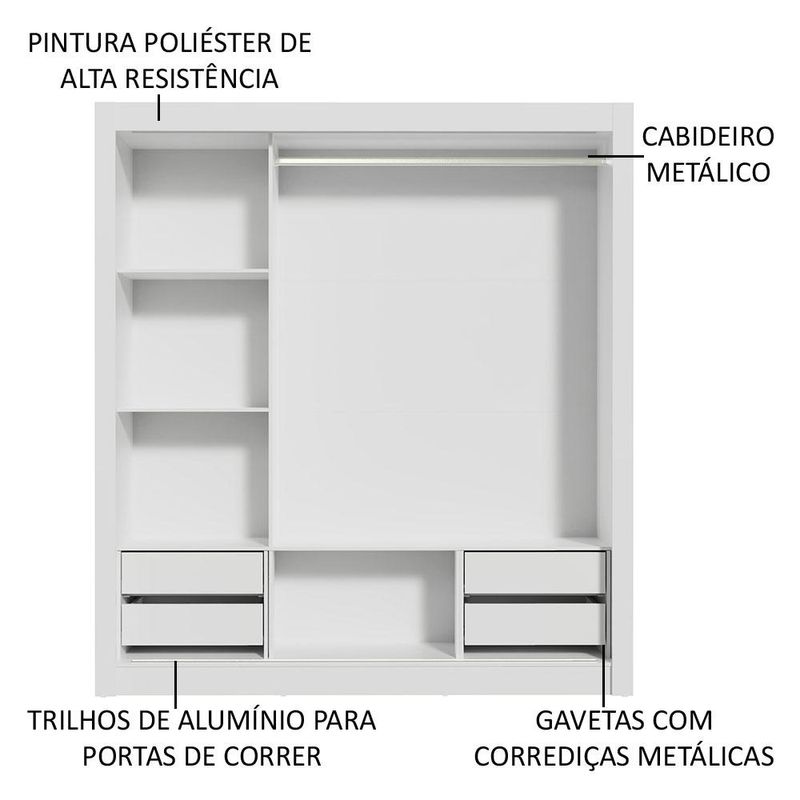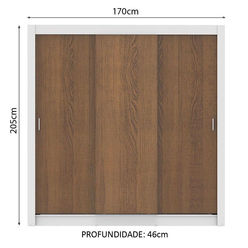 Guarda Roupa Casal Madesa Lyon Plus 3 Portas de Correr 4 Gavetas - Branco/Rustic REF: 511126_Sicredi