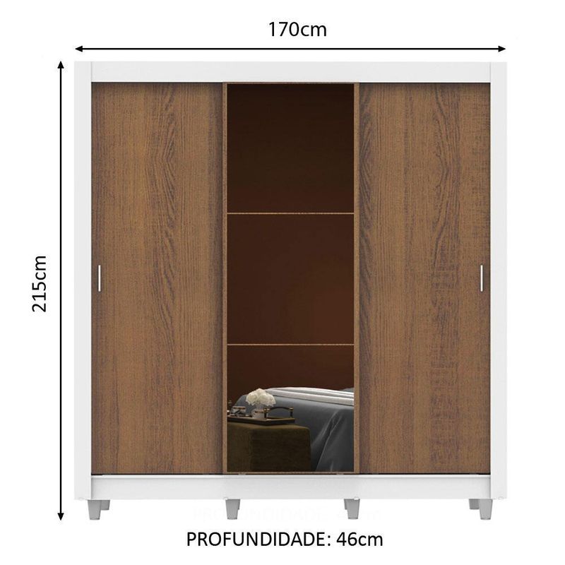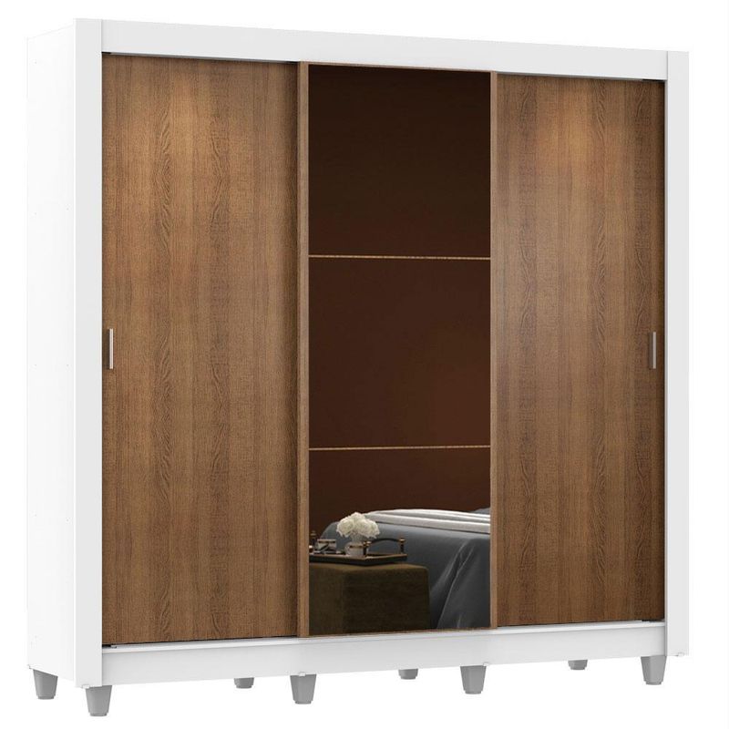 Guarda Roupa Casal Madesa Mônaco 3 Portas de Correr com Espelho com Pés - Branco/Rustic REF: 511171_Sicredi