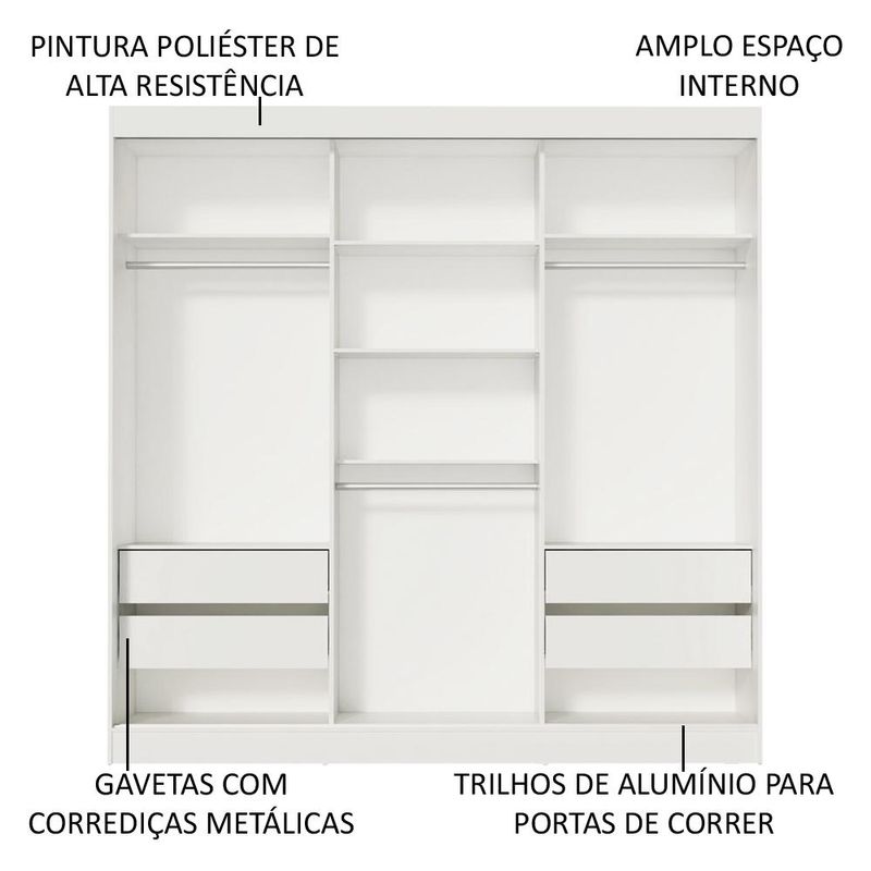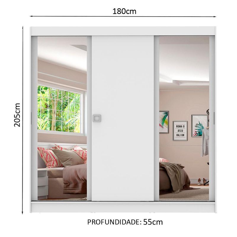 Guarda-Roupa Casal Madesa Napoli 3 Portas de Correr com Espelho - Branco REF: 511351_Sicredi