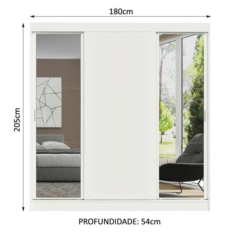 Guarda-Roupa Casal Madesa Reno 3 Portas de Correr com Espelhos - Branco REF: 511379_Sicredi